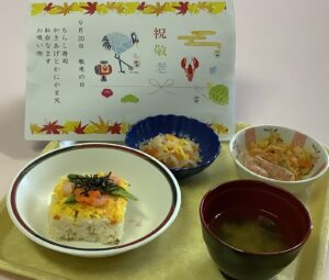 敬老の日、9月20日のお祝いのお食事(昼食)です。