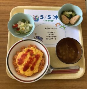 5月5日(こどもの日)の昼食は、オムライスとコロッケを召し上がって頂きました。