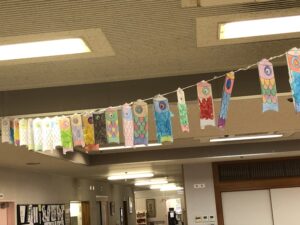 デイサービスではデイルームに、こいのぼりの飾りつけをしました。
