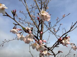 去年植えたソメイヨシノが、小さい木ながら花を咲かせ始めました。