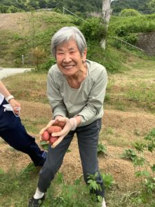 デイサービスの利用者さんと入居者さんと一緒に収穫しました。
