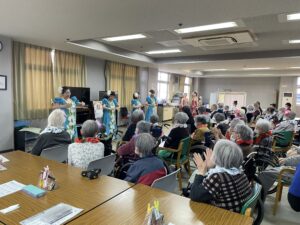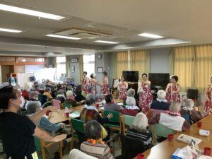 3月26日金曜の午後、JOYフラシスターズの10人の方が来設、フラダンスを披露し